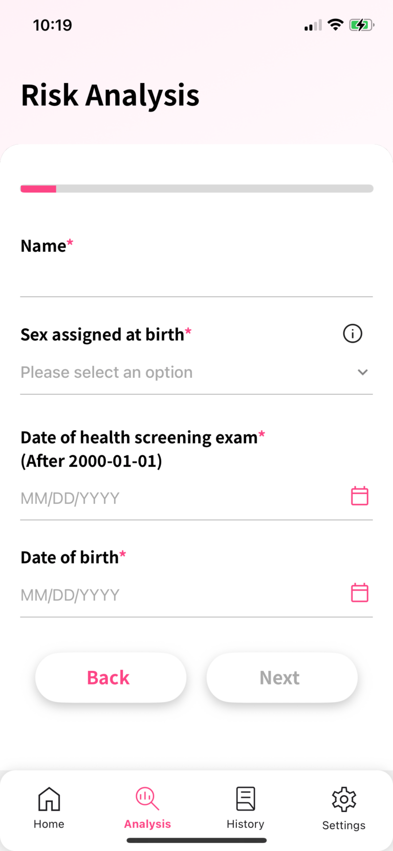 Have your most recent health screening results ready and fill in the results in the app form to find out your risk level.
