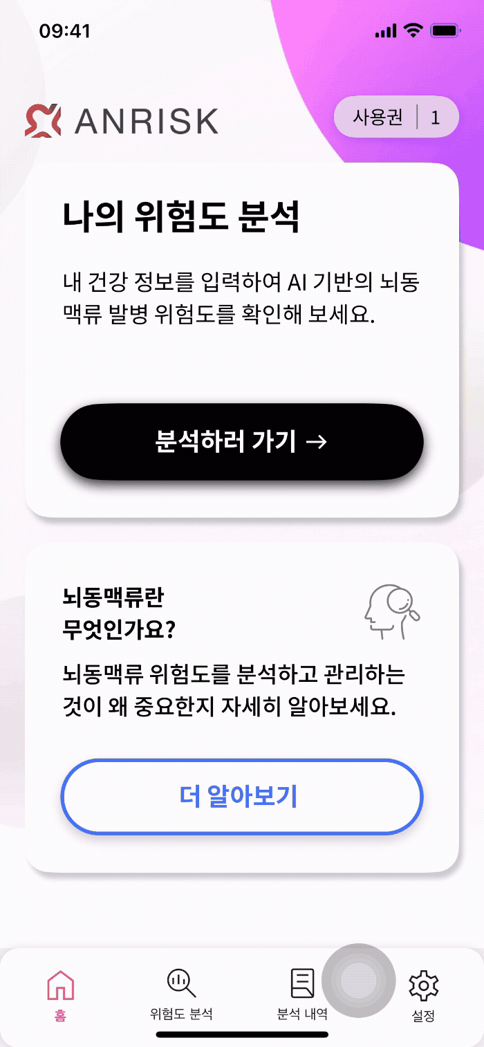이제 앱으로 최근 건강검진 결과를 간편하게 불러와서 뇌동맥류 발병 위험도를 분석하고 결과 보고서를 조회하실 수 있습니다.