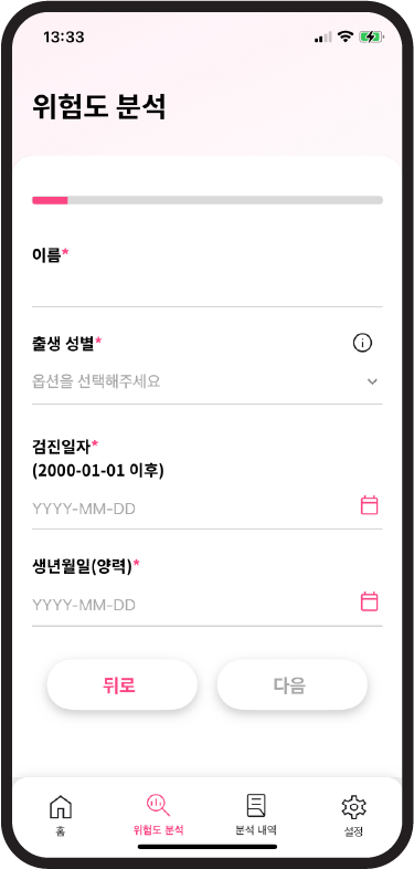 결과를 불러오고 간단한 가족력 설문만 완료하면 분석을 요청할 수 있습니다.